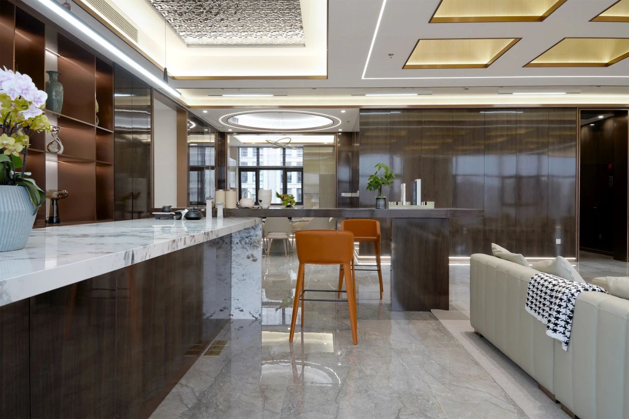 健威将意式优雅融入到本案设计中,以高光木饰面和流行石材为基础,结合金属、皮质等多种元素的穿梭点缀,打造出时尚、高级、有质感的理想之家。