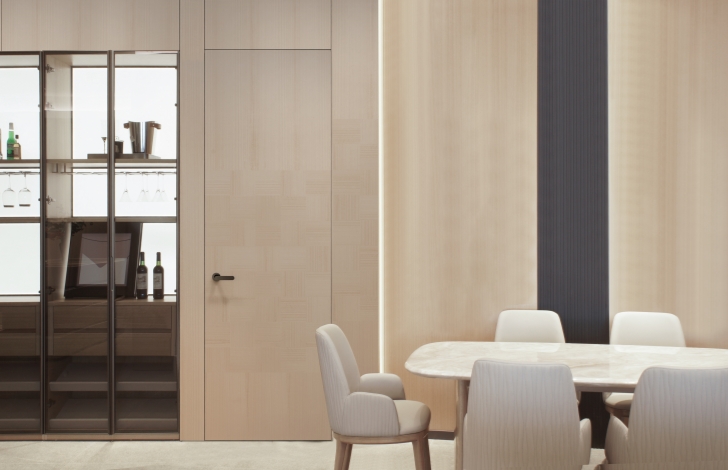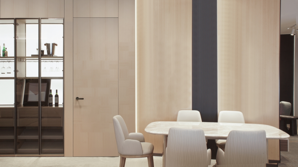 崇尚自然,至简至美。摒弃冗余的装饰线条,通过细腻纹理的错位拼接,丰富了空间的视觉层次,让家的精致与格调美若一体。